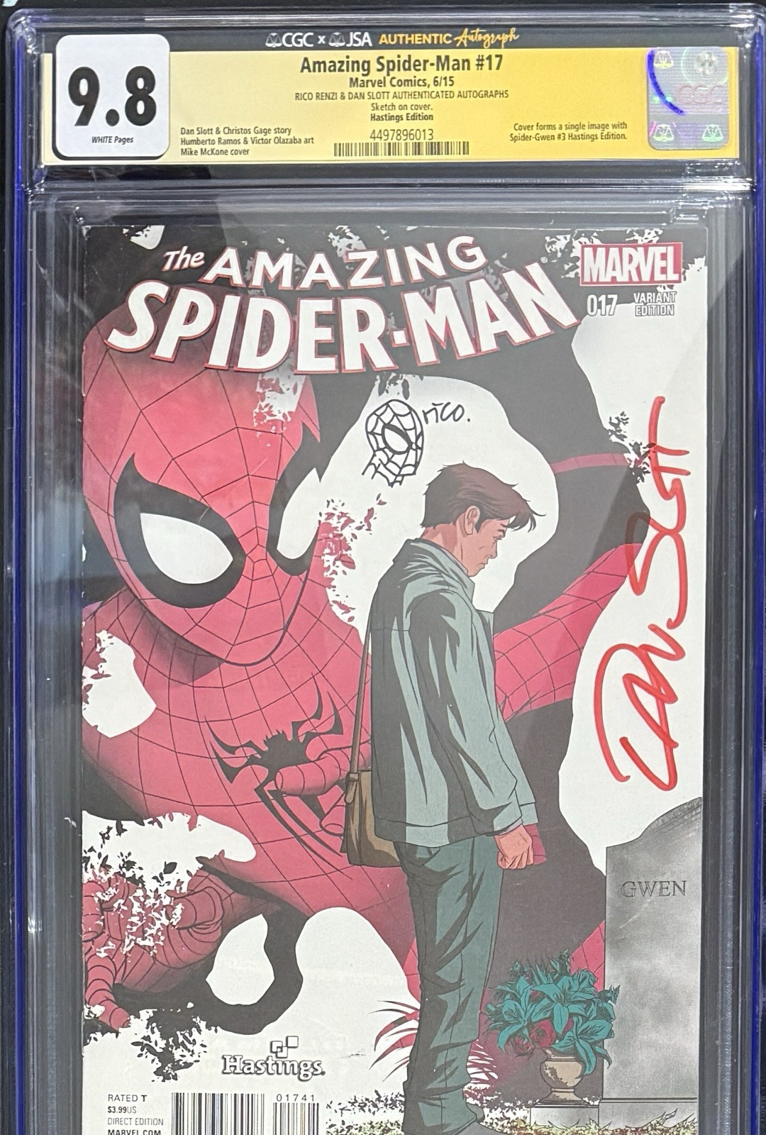 The Amazing Spider-Man #17 CGC 9.8 SIGNED BY RICO RENZI & DAN SLOTT W/ SKETCH!